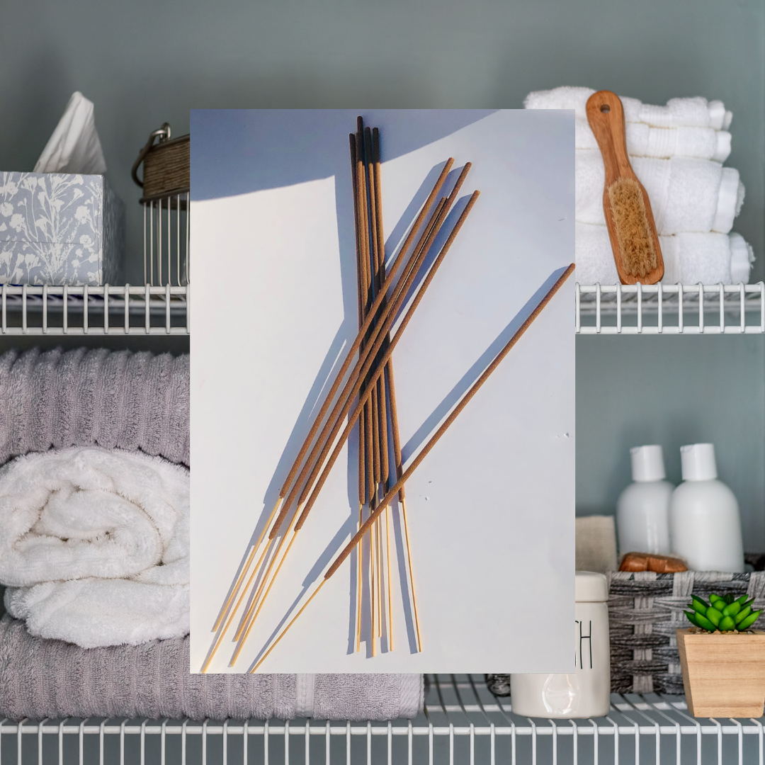 11" Black Incense Sticks- Handmade from a natural bamboo stick with a natural tree wood power base. Set of 15.